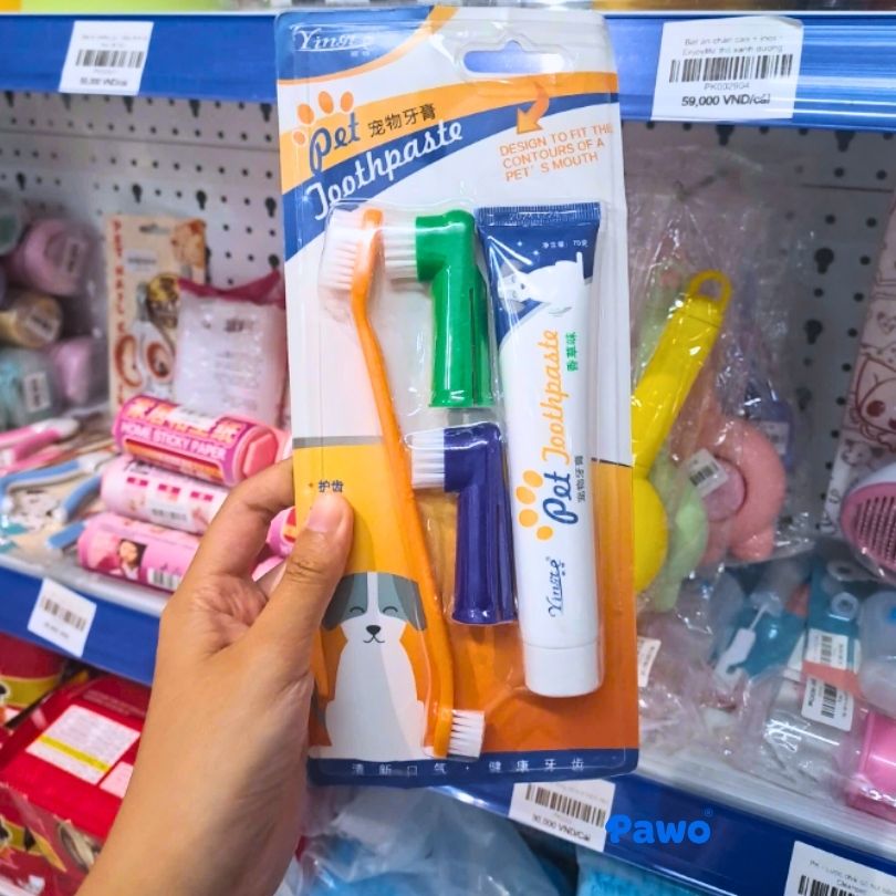 Cũng như người, chó cần được chải răng. Tuy nhiên, tuyệt đối không dùng kem đánh răng của người. Bạn nên mua bộ kem đánh răng chuyên dụng cho thú cưng có vị thịt hoặc bạc hà để cún dễ hợp tác hơn.