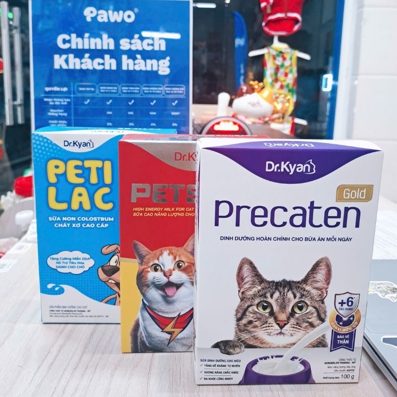 Mặc dù Dr. Kyan có các dòng như Precaten hay Petsure, nhưng theo kinh nghiệm tại Pawo, Petilac mới là dòng sữa cho mèo con chuyên biệt nhất. Loại sữa cho mèo con này chứa hàm lượng chất xơ tự nhiên và DHA cao, giúp bé phát triển trí não và bảo vệ đường ruột tối đa dưới 2 tháng tuổi.