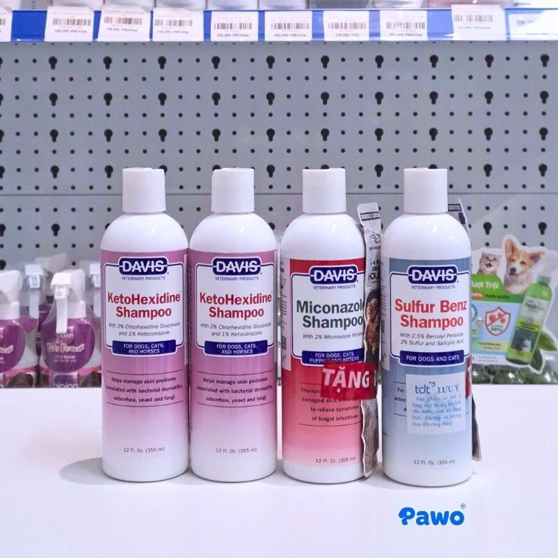 | Davis (USA) | Miconazole, Sulfur, Benzoyl | Trị nấm nặng, viêm da mủ, ghẻ Demodex | Chó bị viêm da mãn tính, mùi hôi nặng |